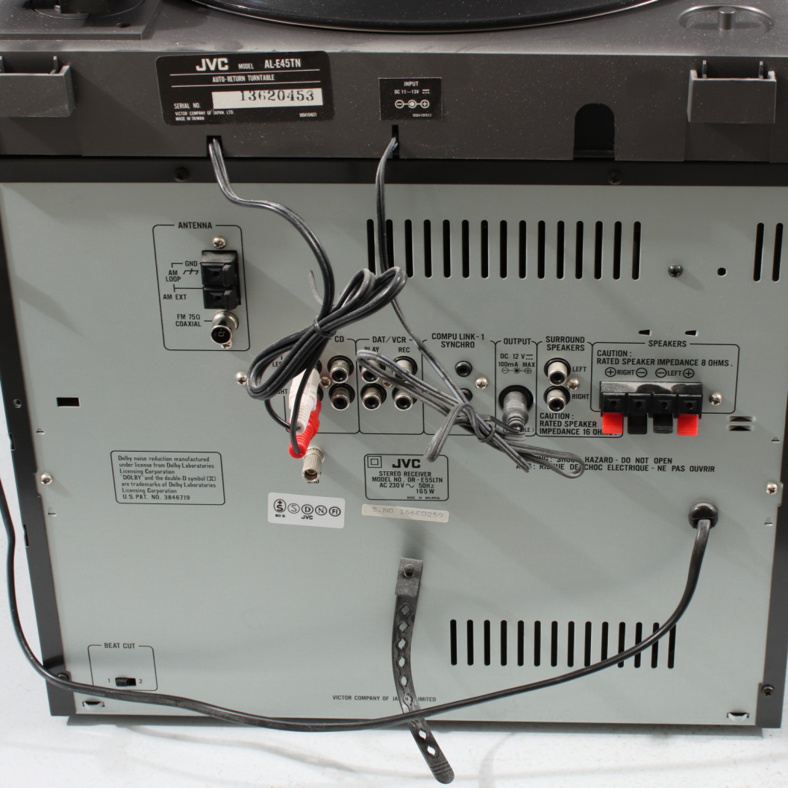 Stereo med skivspelare, radio, kassettbandspelare samt 2st högtalare, fungerar vid test. (vån2)