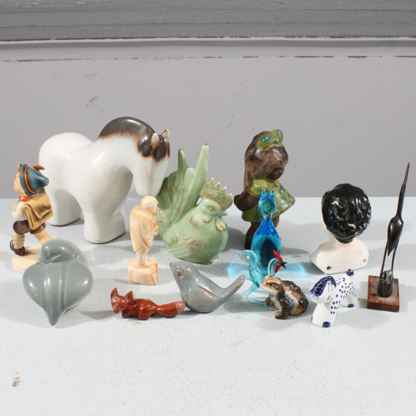 Samling, olika material, OBS! Hummel pojke med mindre glasyrnagg på lugg, höjd 14 cm och lägre. (vån3)