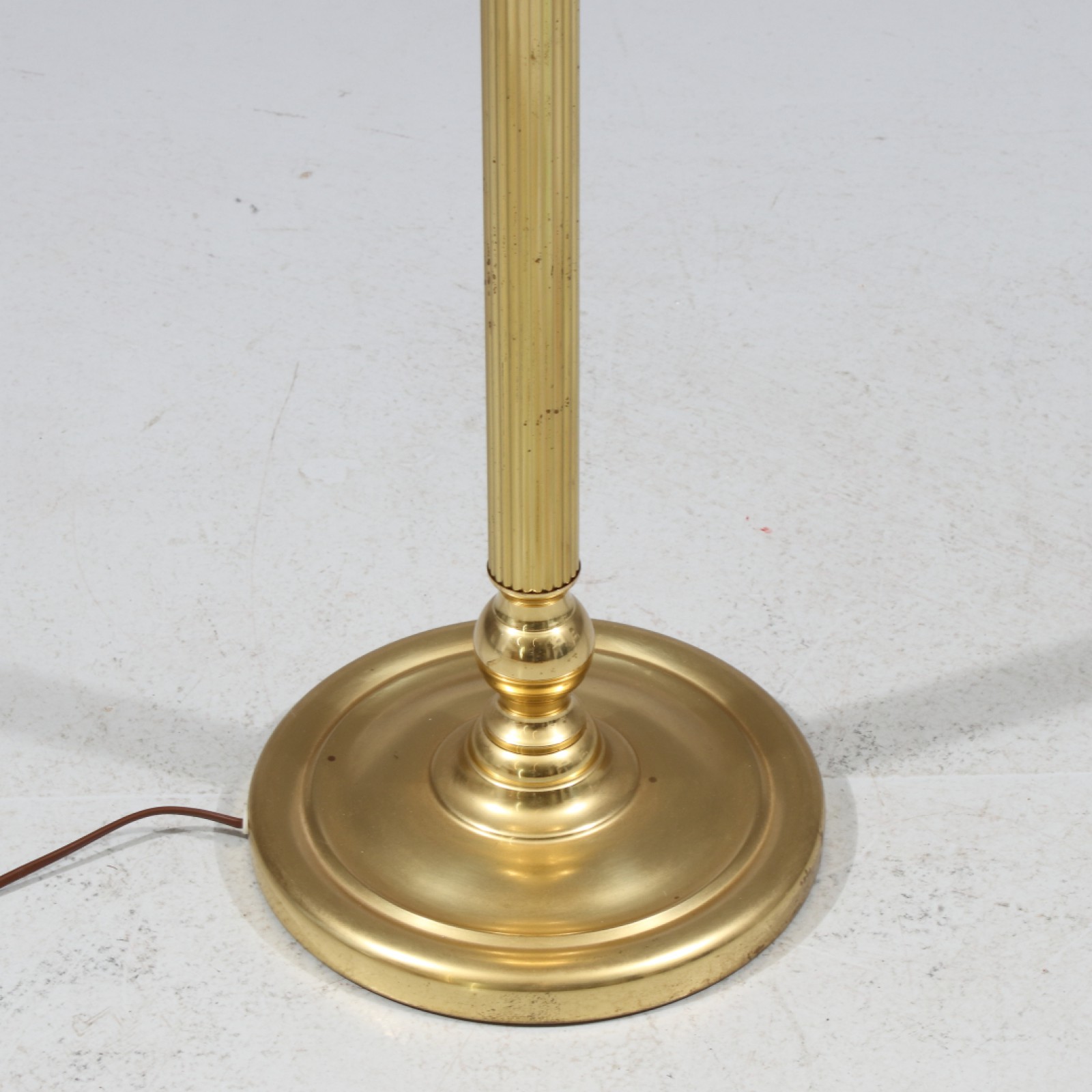 mässing, tygklädd skärm med fransar, 1970,80-tal, höjd 156 cm. (vån2)