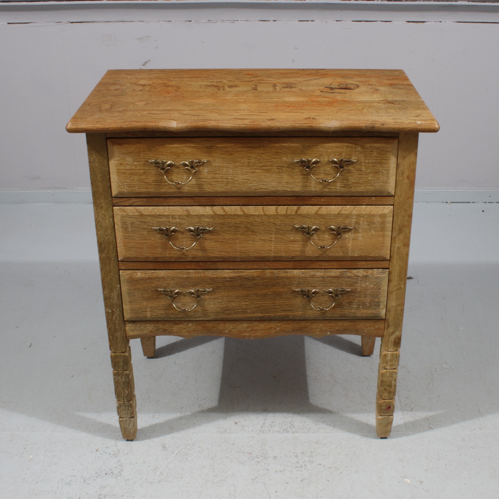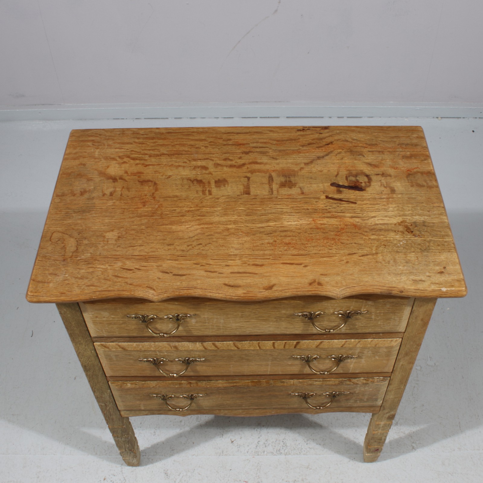Lövträ, 1900-talets andra hälft, skiva med ringmärken, ben med skavmärken, H.68, B.60, Dj.35 cm. (vån3)