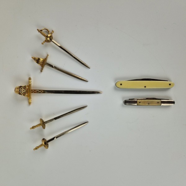 Mindre fickknivar. Längd ca 6,5 cm resp. 7,5 cm, fullt utfällda ca 13 cm resp. 13,5 cm