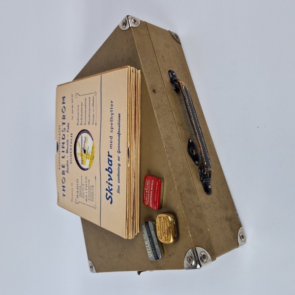 Resegrammofon "Sonata" med 10 stenkakor och 3 askar grammofonstift.