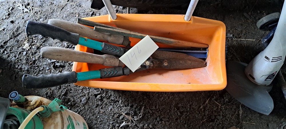 Trädgårdsredskap, trappkärra, mm