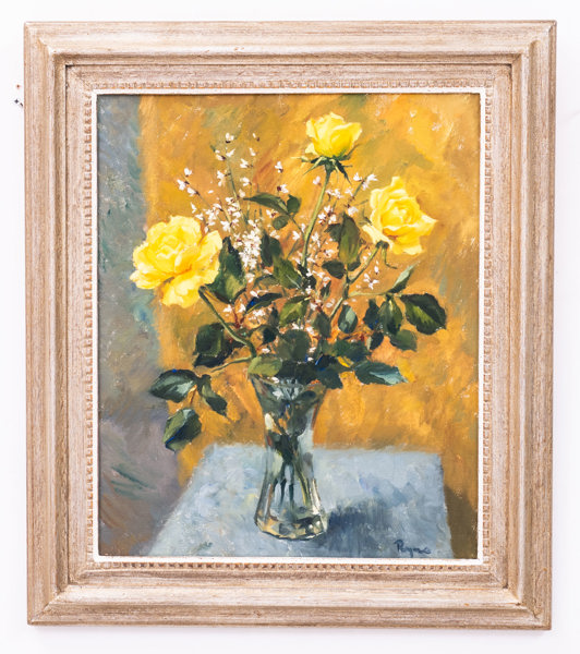 Blomsterstilleben, signerad Ryno, olja på duk, bildmått 41x33 cm