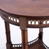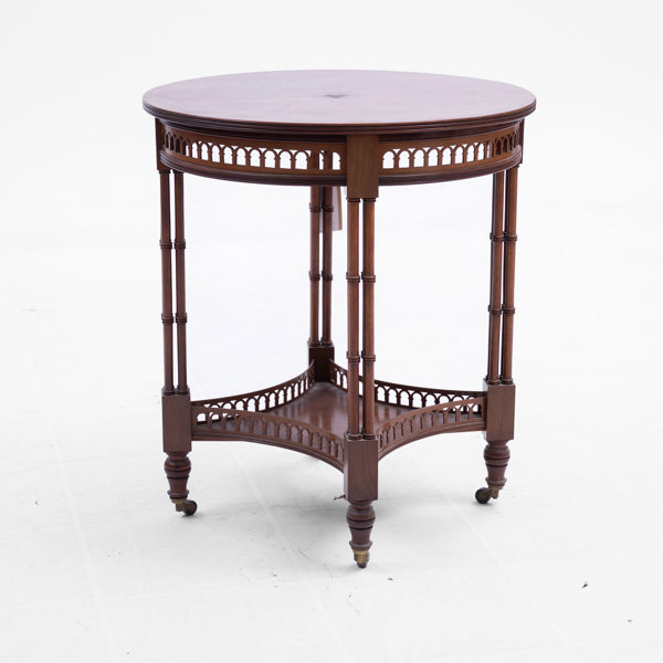 Kolonialstil, mahogny, fotavslut med hjultrissor, höjd 68, diam 59 cm
