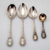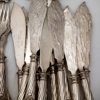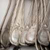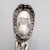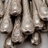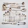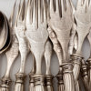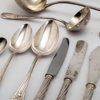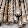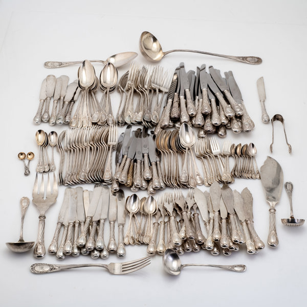 Omkring år 1900, bestående av: 18 matgafflar, 24 matknivar, 12 matskedar, 23 bordsgafflar, 12 bordsknivar, 12 bordsskedar, 12 mindre bordsknivar med silver blad, 12 fiskgafflar, 12 fiskknivar, 6 smörknivar, sockertång, ragusked, 2 såsskedar, 2 saltskedar, 2 uppläggningsbestick för fisk, ostkniv, strösockersked, soppslev, uppläggningsgaffel, 12 mockaskedar, 12 teskedar, 11 dessertgafflar, 5 marmeladskedar, samtliga delar med familjen Dicksons släktvapen, vikt 8500 gram, exkl knivar med rostfria blad