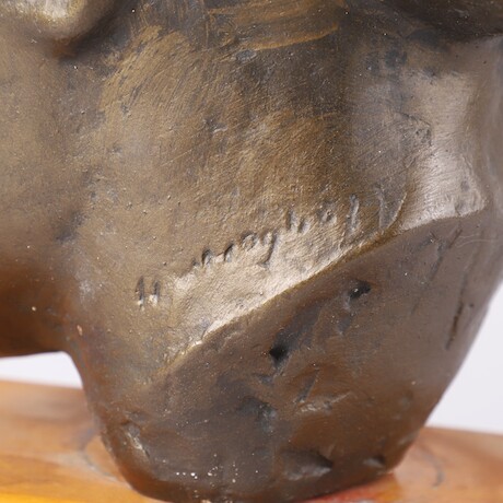 Helge Högbom, byst i gips på träsockel, tot H = 38