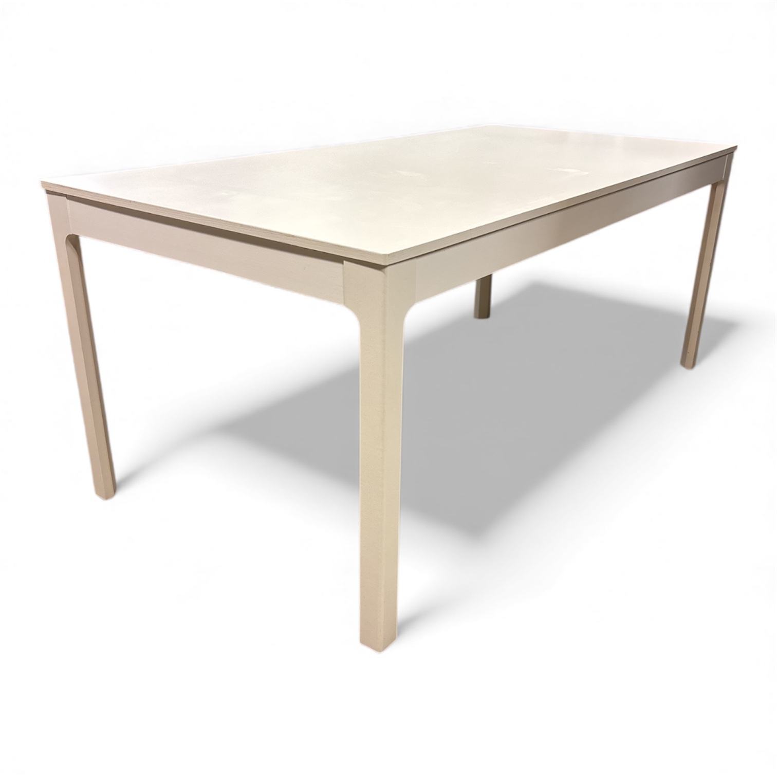 Bordet står stadigt på fyra raka ben med elegant rundade innerhörn vilket ger ett luftigt och modernt uttryck. Passar perfekt som matbord, arbetsbord eller köksbord.
