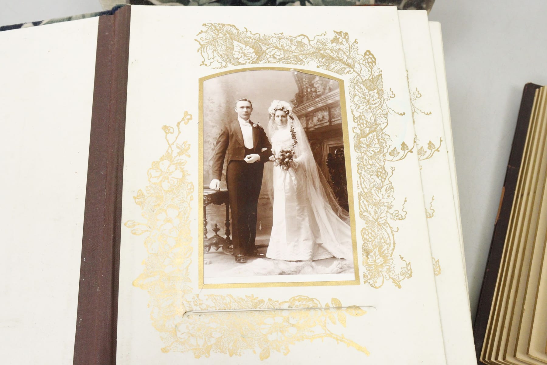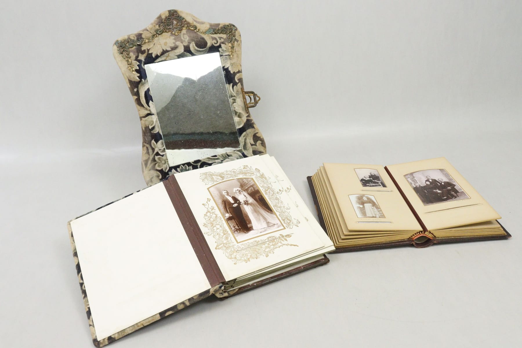 Bilder Äldre fotoalbum, 2st, varav ett med spegel