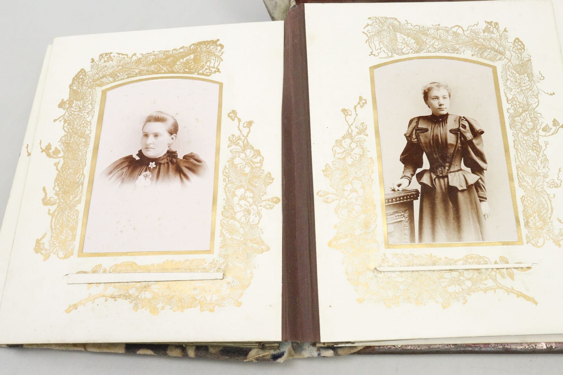 Äldre fotoalbum, 2st, varav ett med spegel