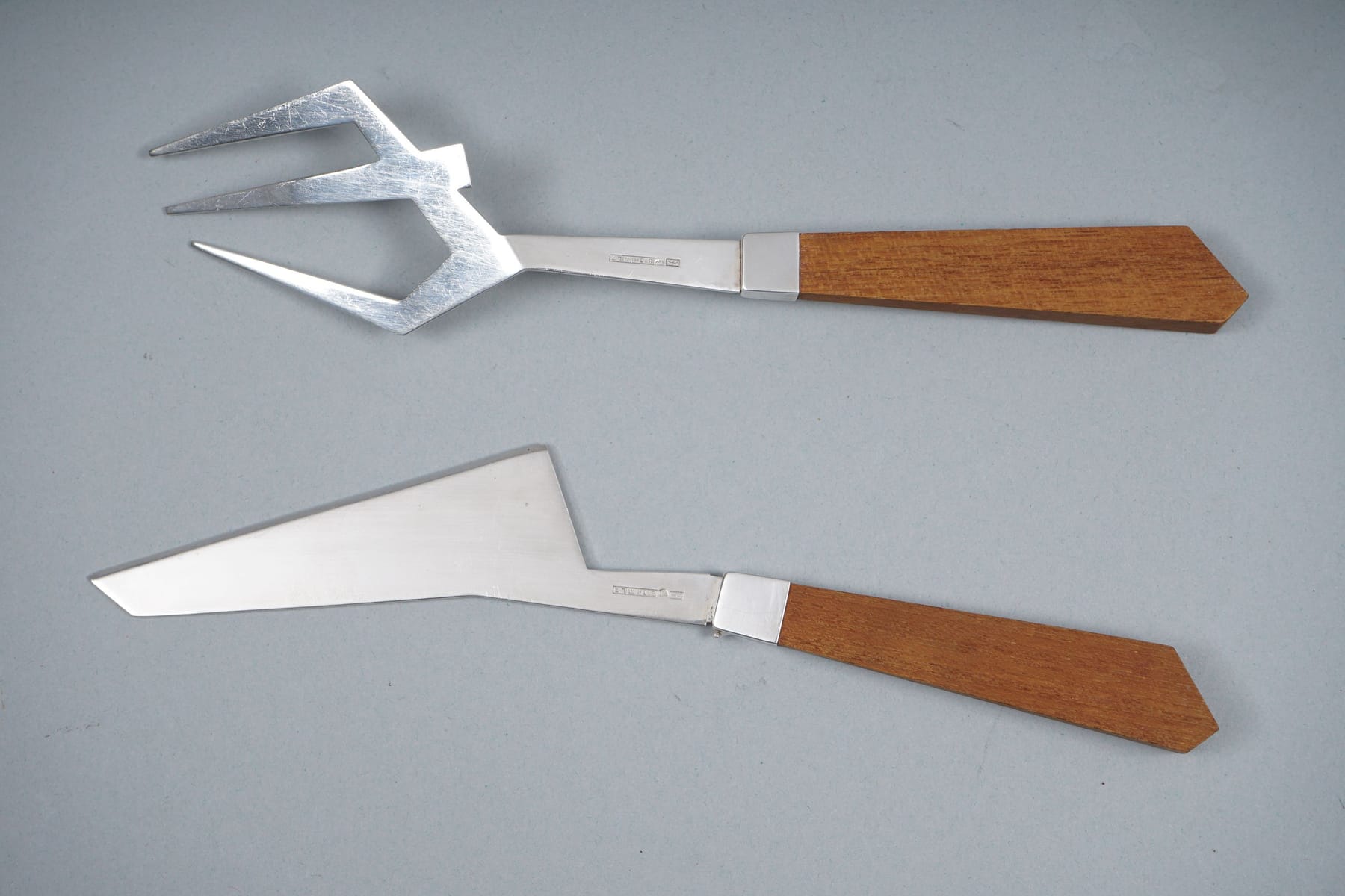 Bilder 2 kpl tarjoiluottimia hopeaa ja tiikkiä