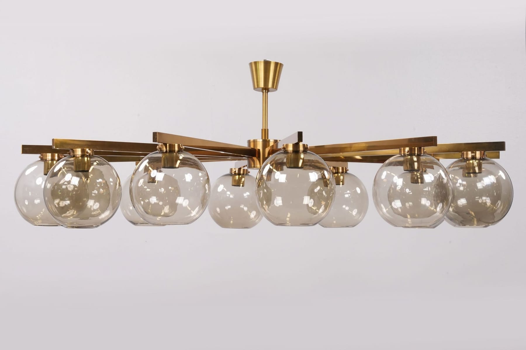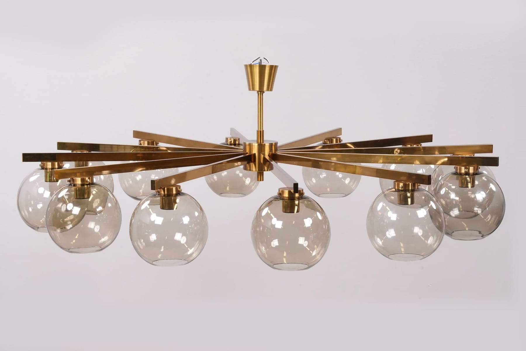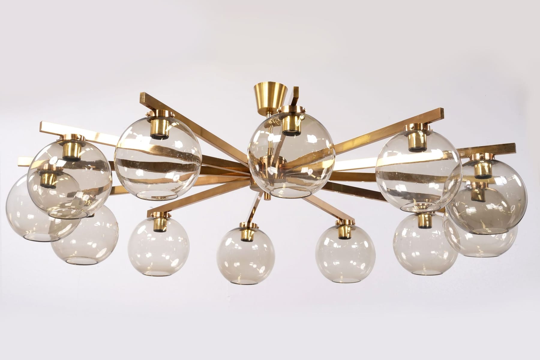 HOLGER JOHANSSON, taklampa med glaskupor, mässing, Westal, 1900-talets andra hälft