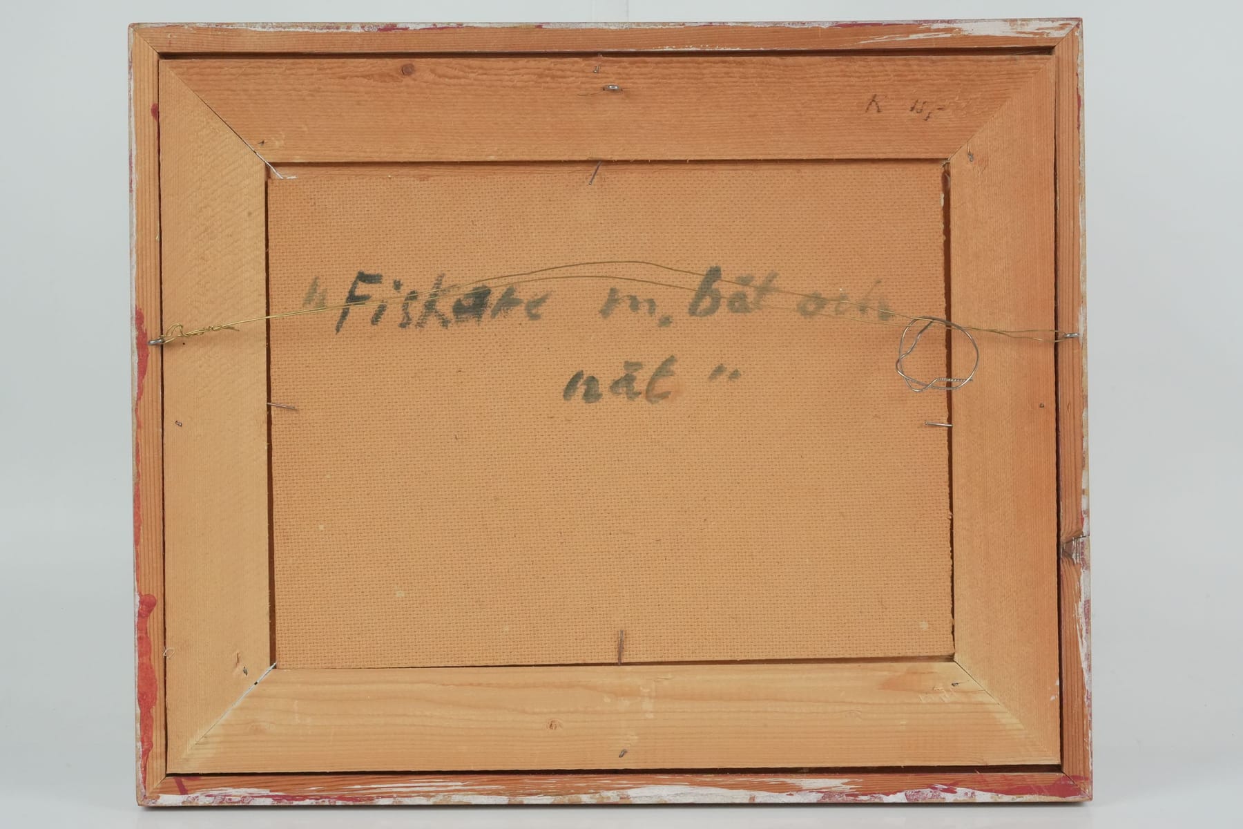 Bilder TEDDY SEMPINSKI (1927-1998), olja på pannå, "Fiskare m. båt och nät"