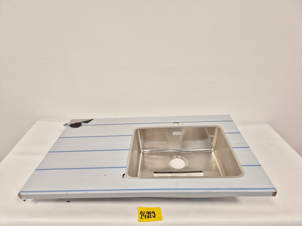 Rostfri diskbänk StalaMått: 105,5x61cmAnmärkning: Saknar bottenventil, avlopp m.m. Skada vänster bak på bänkskiva