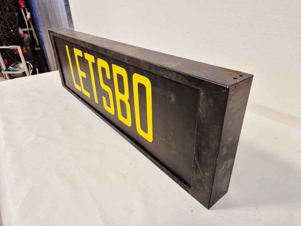 Destinationsskylt BussMått: 94x7,5x28cmText: Letsbo m.m.Anmärkning: Vev saknas