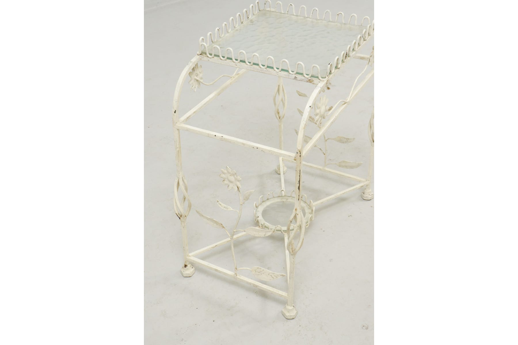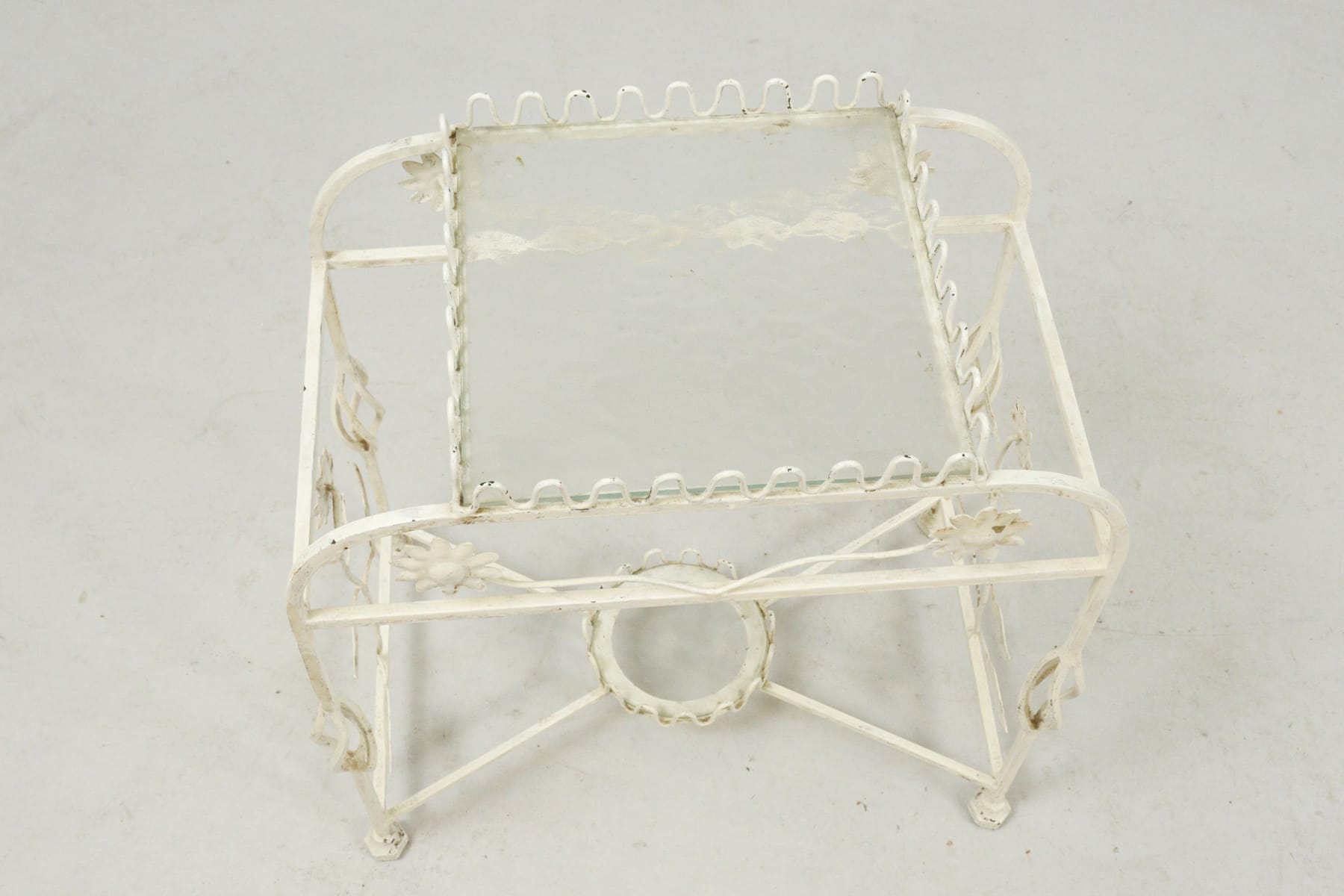 Blombord, metall med glasskivor