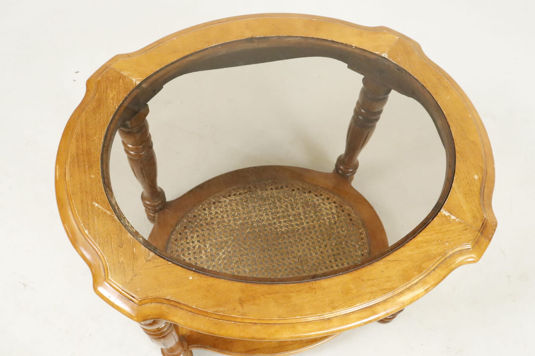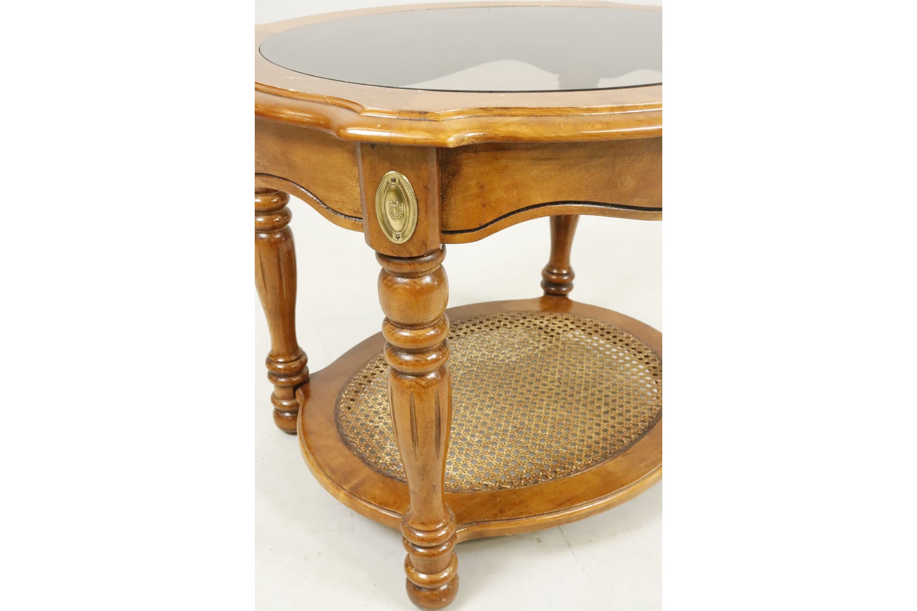 Soffbord med glasyta och rottinghylla