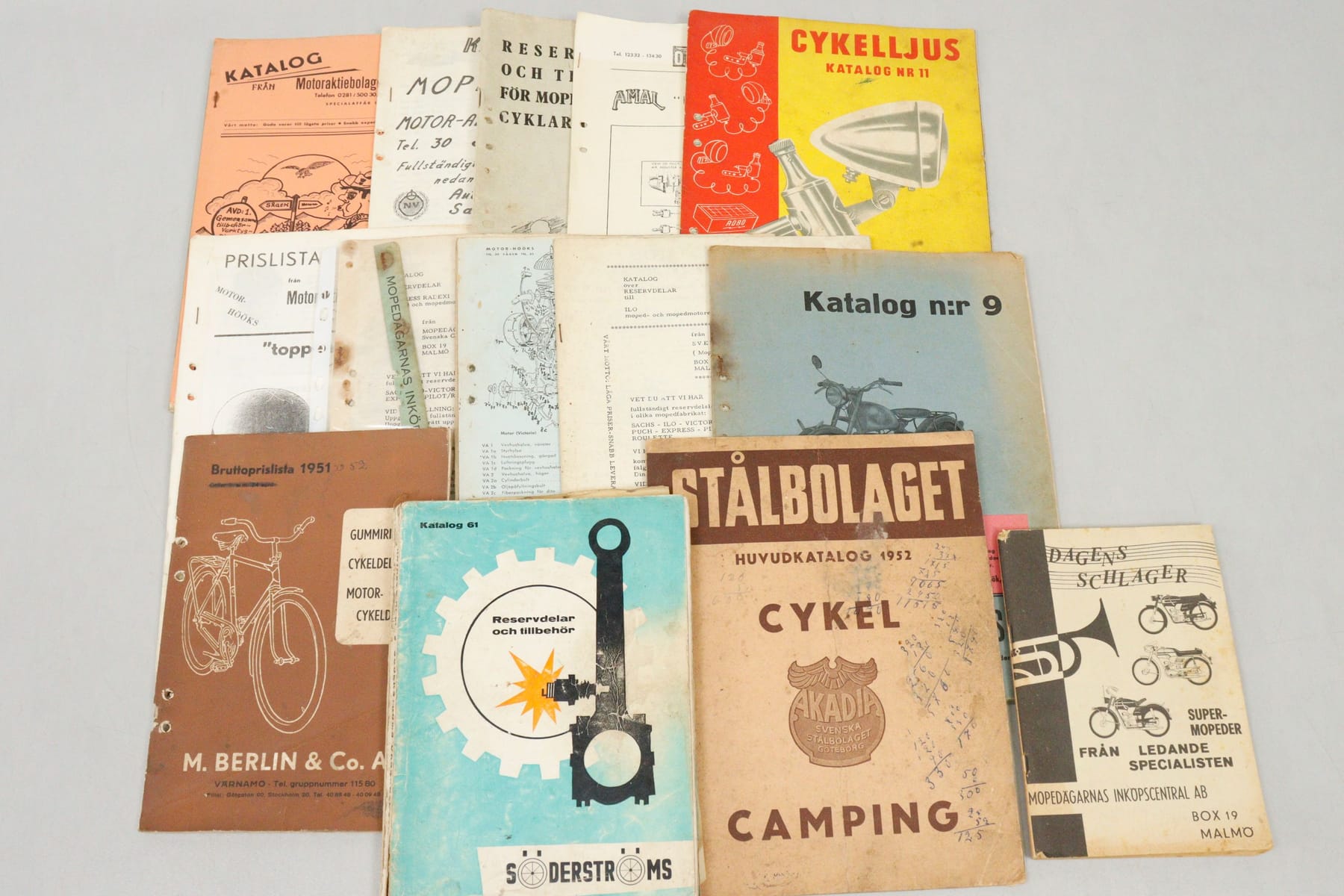 Äldre prislistor och kataloger för cykel, moped och MC