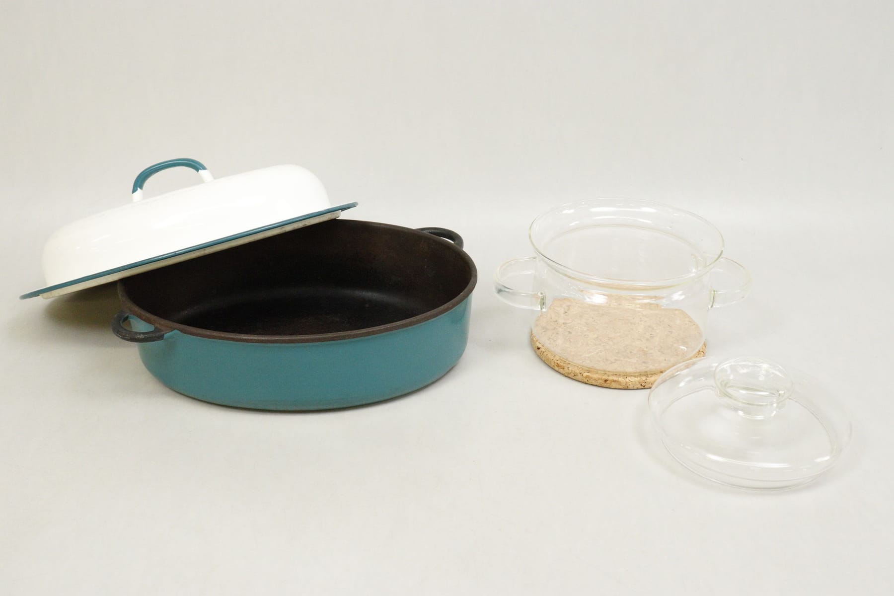 Emaljerad gryta och glasgryta