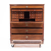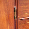 Fanérad i mahogny, beslag i mässing, 2 delad, invändigt med lådinredning bakom klaff, höjd 138, 120x45 cm
