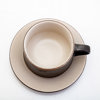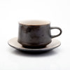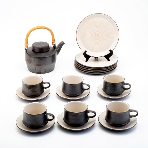 Stengods, bestående av: 6 tekoppar med fat, tekanna, 6 tallrikar, etikettmärkning