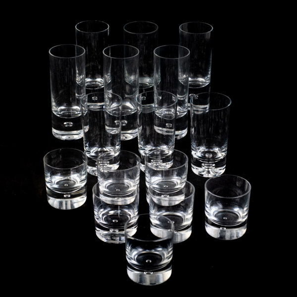 Kosta Boda, bestående av: 6+3 grogglas, 7 whiskyglas, höjd 8-17 cm