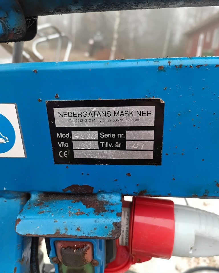 Märke/Modell: Nedergatans Maskiner NE-MA HK-50Max klyvlängd: 50cmMotor: 3kwTryckkraft: 7 tonVikt: Ca 130 kg
