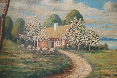 Bilder Oidentifierad konstnär, olja på duk, signerad F Hager, 42 x 62