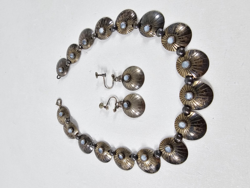 Silver, halsband och örhängen, vikt inkl stenar 45 gr