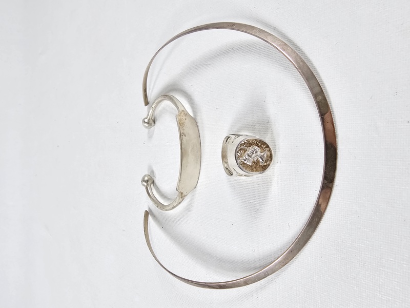 Silver, halsring, armband och ring, vikt 45 gr