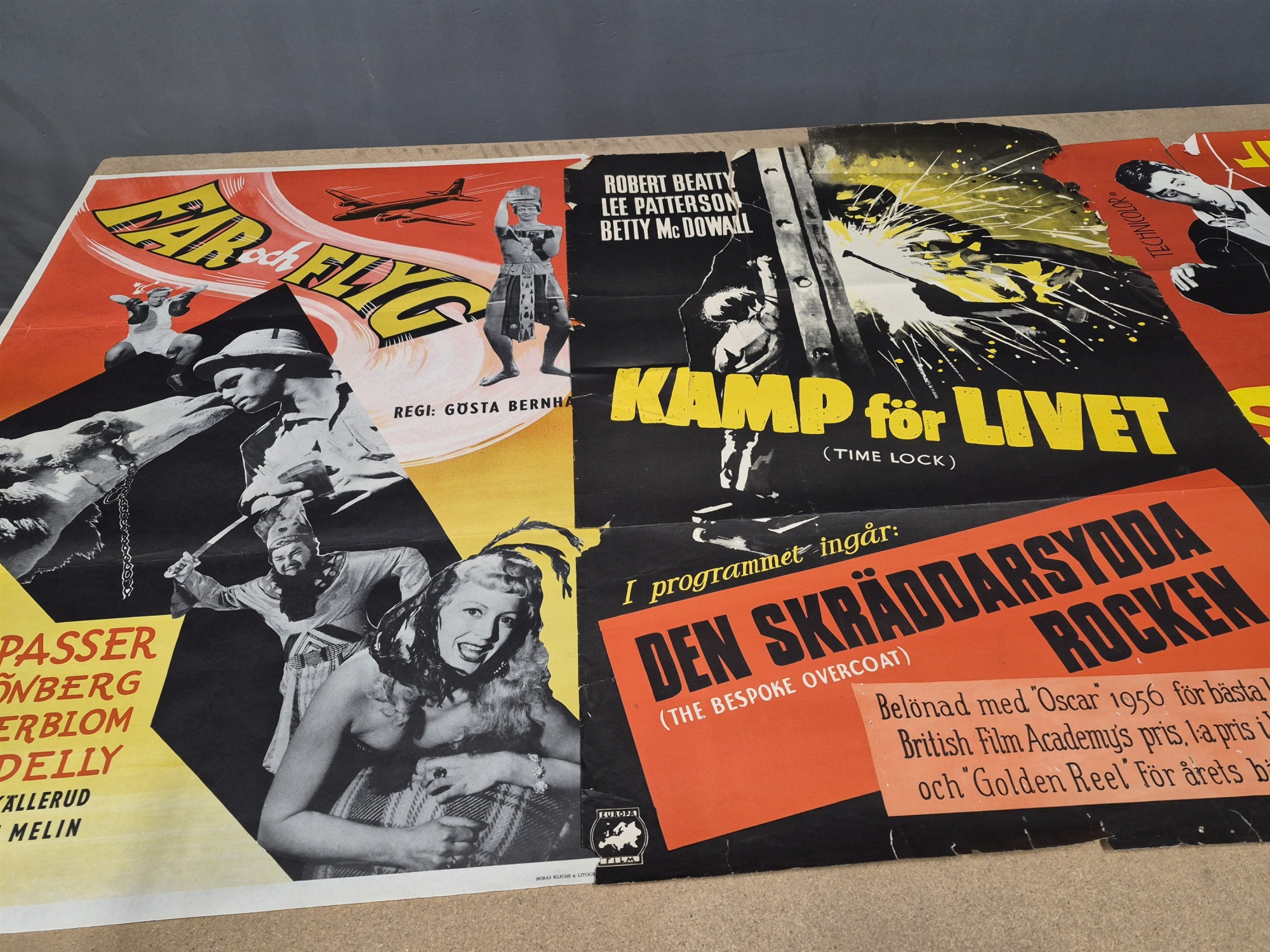 Auktioner Filmposters 4 st bla Far och Flyg och Flickor för Mambo bar, större skador, mått 100x70 cm