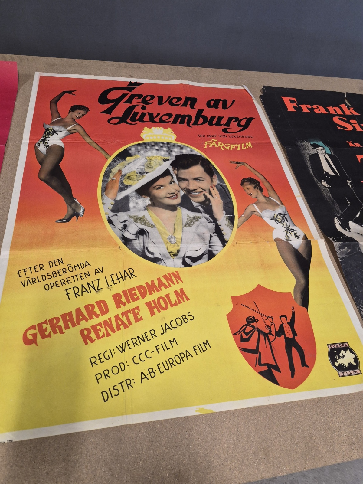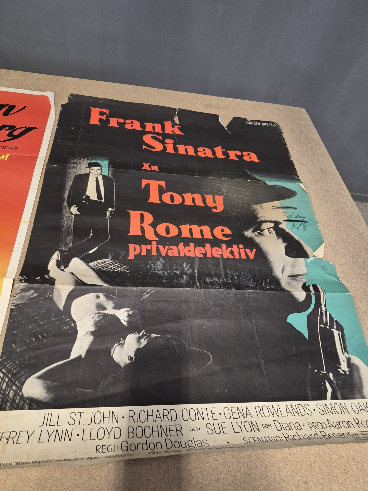 Bilder Filmposters 3 st bla Takt och ton i Himmelsängen och Tony Rome privatdetektiv med Frank Sinatra, revor och veck finns, mått 100x70 cm