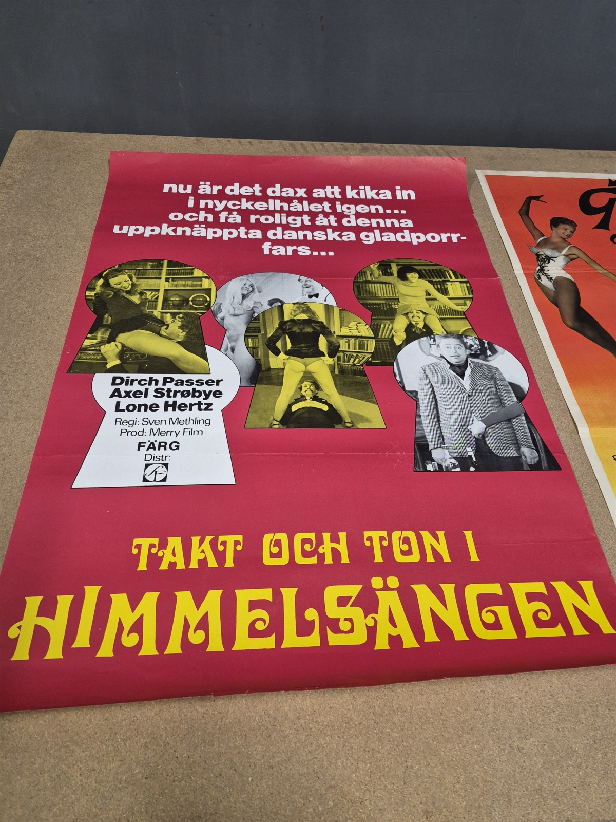 Auktioner Filmposters 3 st bla Takt och ton i Himmelsängen och Tony Rome privatdetektiv med Frank Sinatra, revor och veck finns, mått 100x70 cm