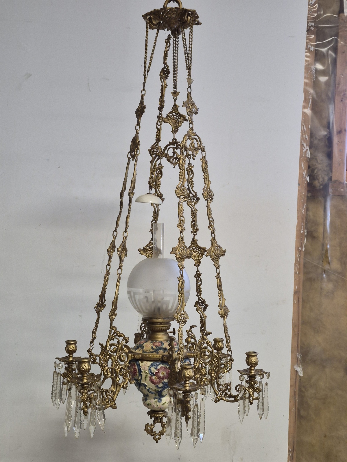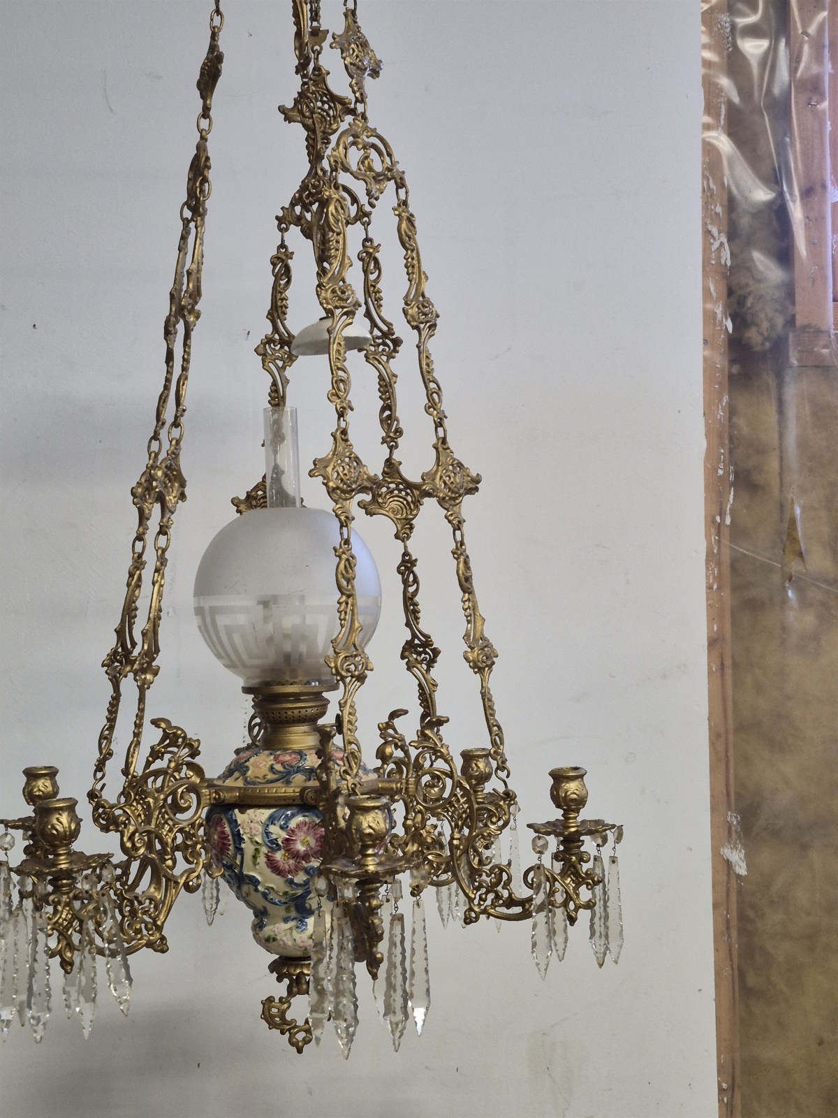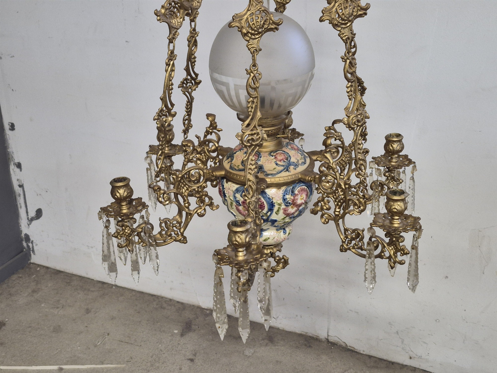 Bilder Takfotogenlampa, majolika med ljusarmar, höjd 120 cm, diameter 55 cm