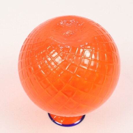 Vas, Venini, Murano Italien, 1995, optikblåst i orange glas med blå slingar, höjd 17,5 cm, signerad Venini 95