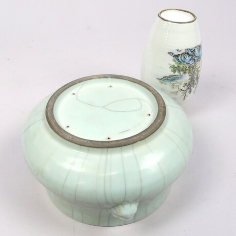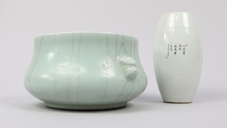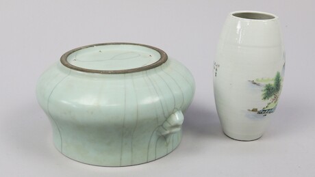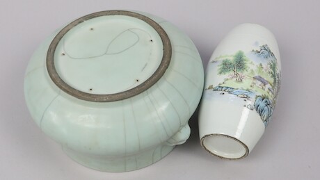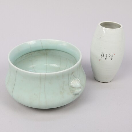 Skål och vas, porslin, Kina, 1900-tal, höjd 18,5 cm och lägre