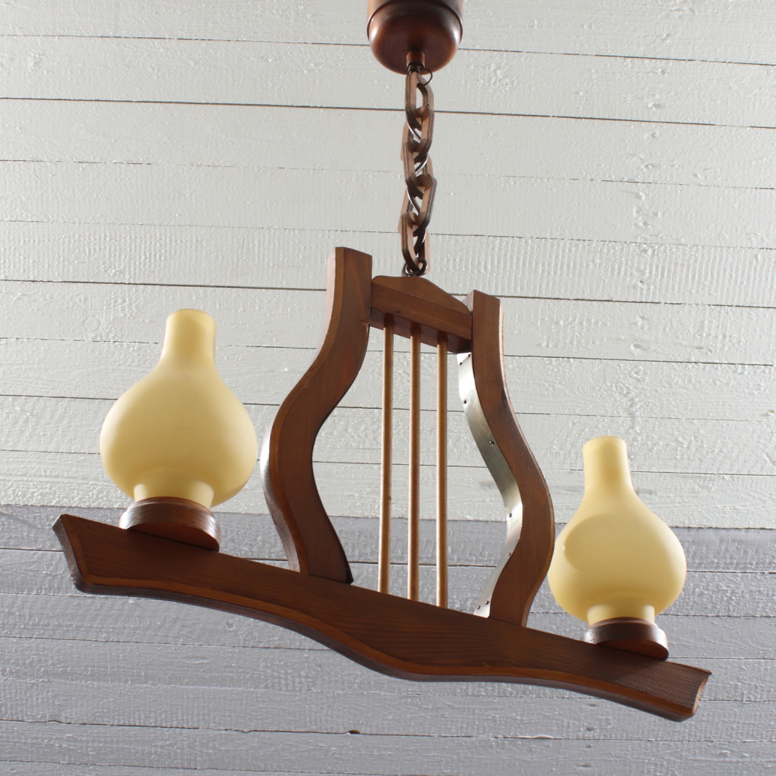 Trä, skärmar i glas, 2-armad, höjd 64 cm, bredd 50 cm. (vån1)