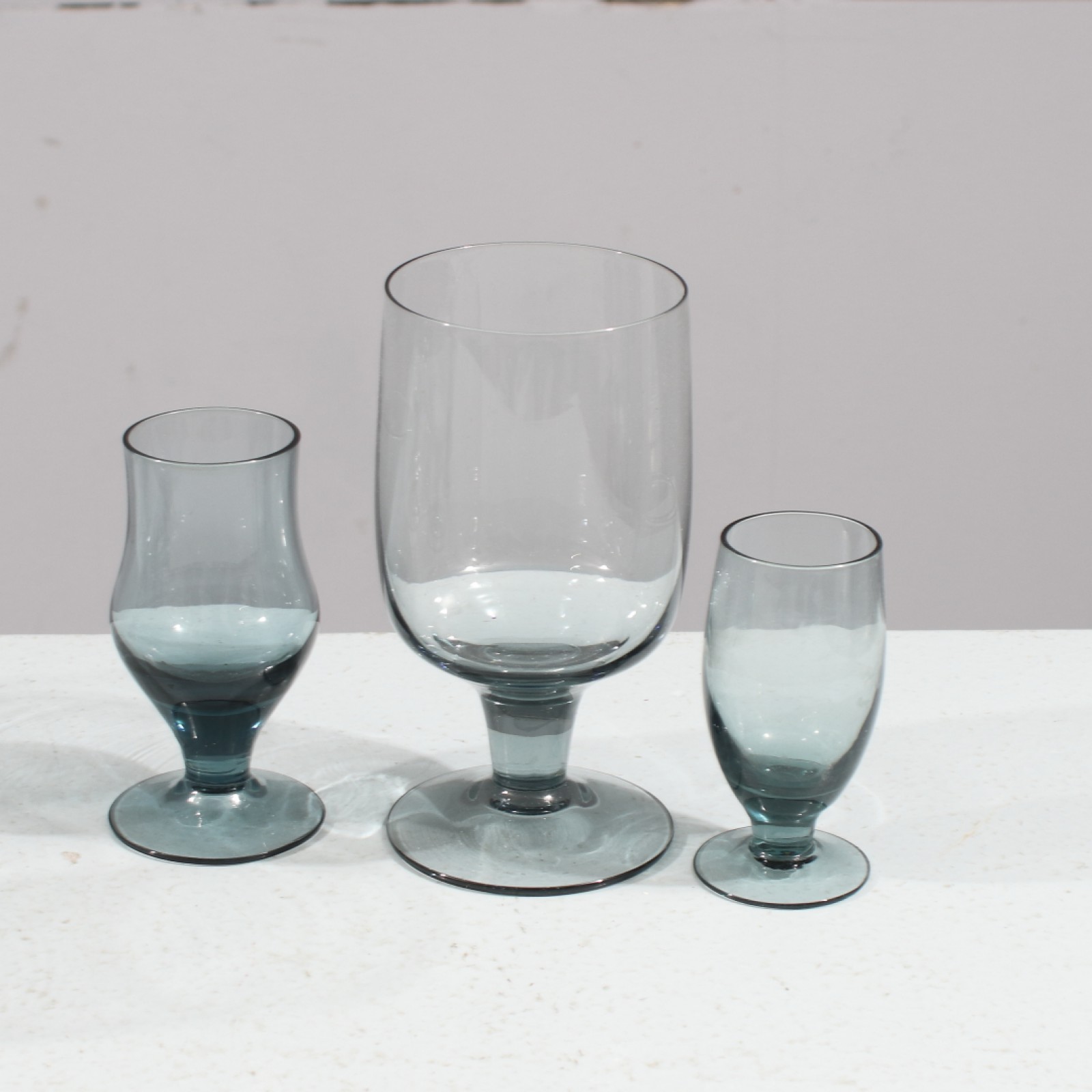 21 delar, blåtonat glas, 11st vin/ölglas, 6st likörglas samt 4st snapsglas, höjd 8-13 cm. (vån3)