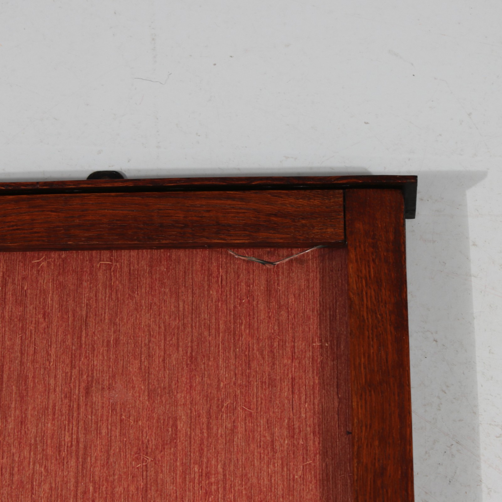 Trä och glas, 1st hörn med spricka i glas, 4,5x101x38 cm. (vån3)