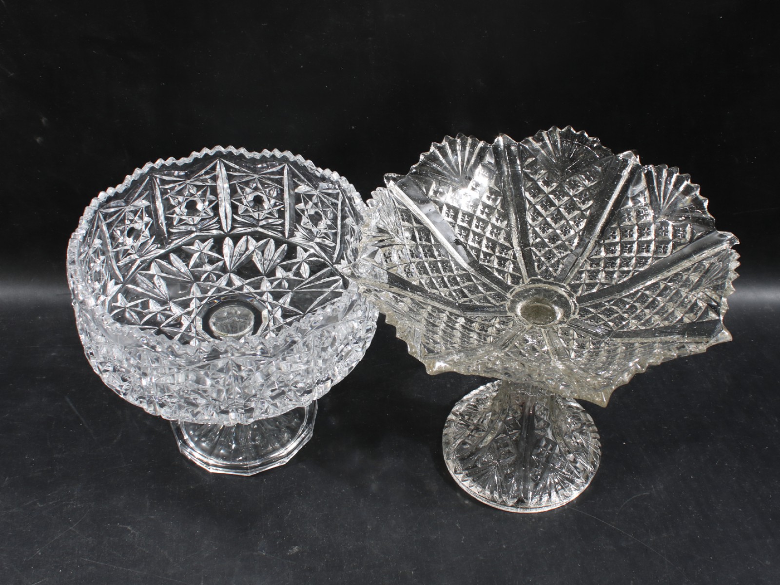 2 stycken, pressglas, höjd 19-22,5 cm, diameter 20,5-26 cm. (vån3)