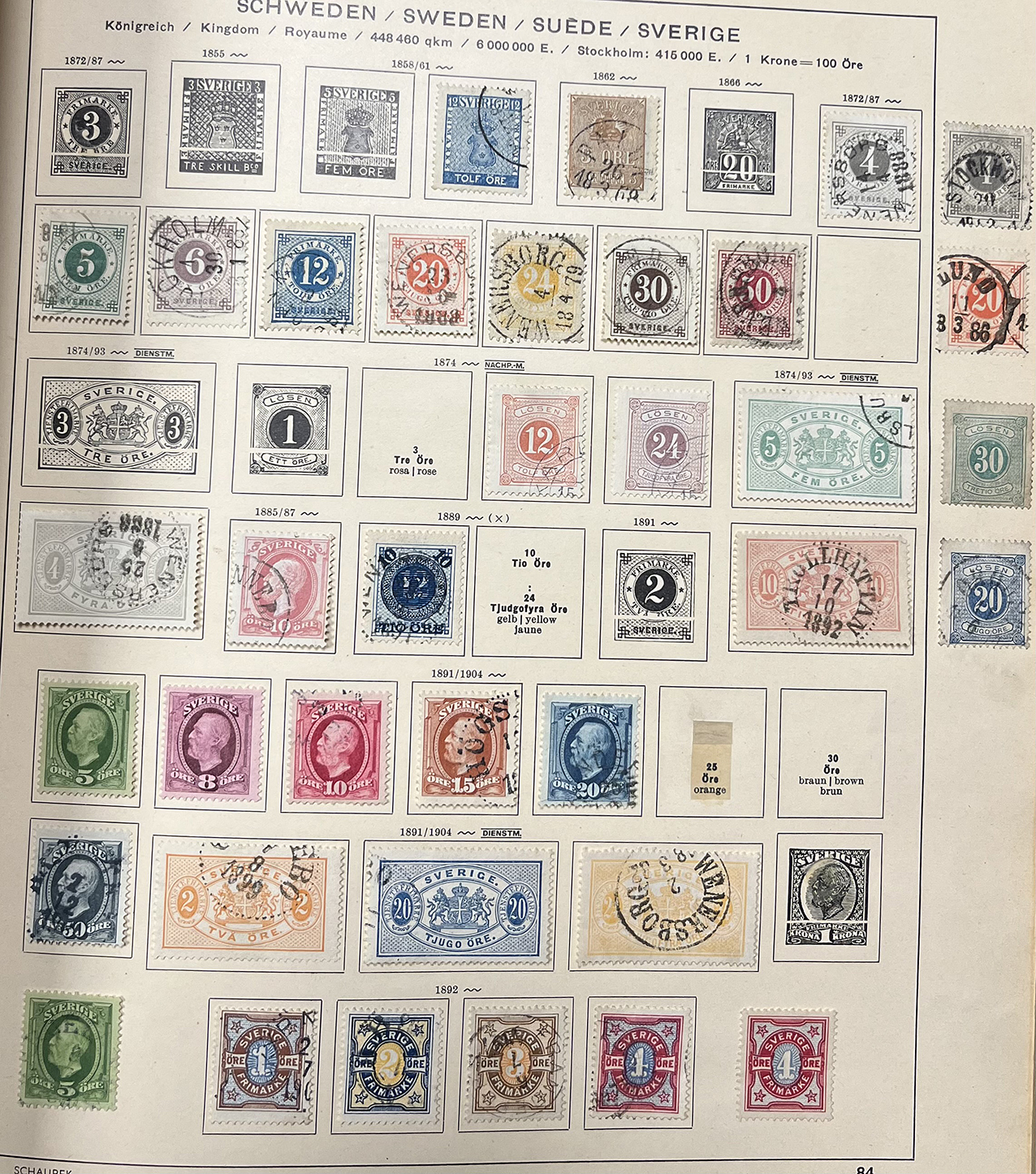 Prti med samling i Schaubekalbum, postfrisk parserie Postverket, några BC-par samt dubbletter 1890-tal.