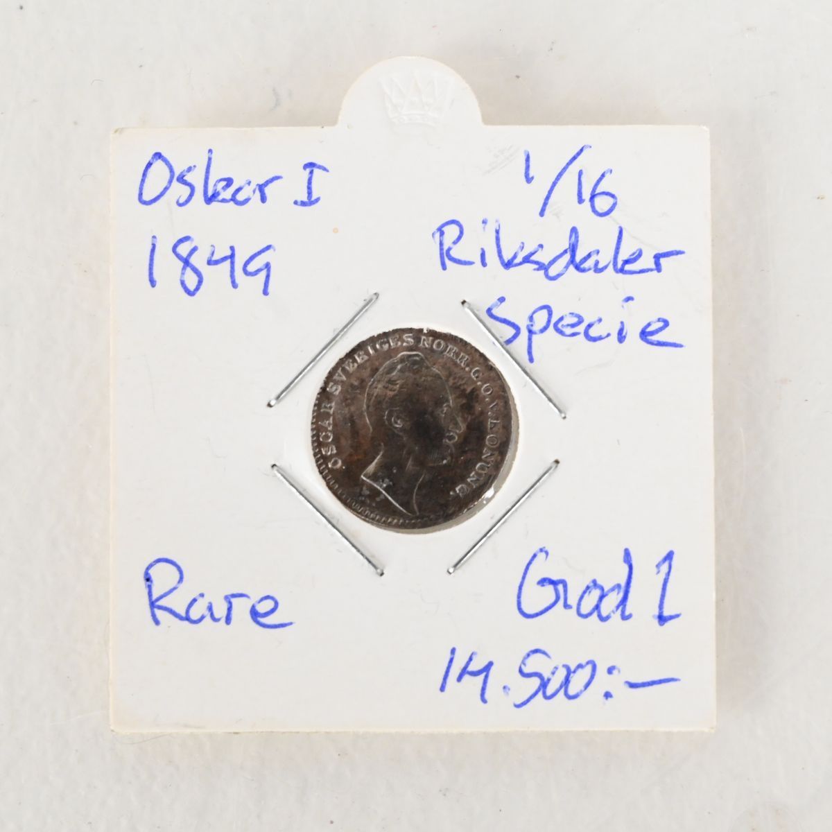 Mynt, Oscar I, 1/16 riksdaler specie, 1849