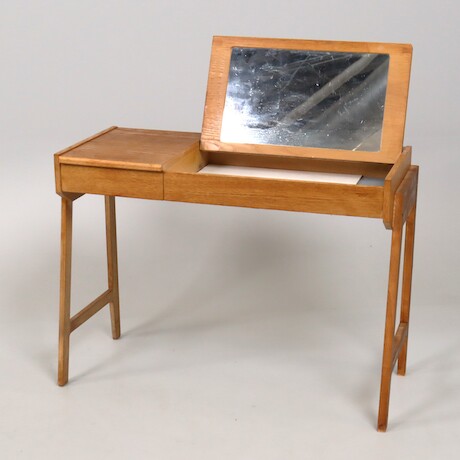 Sminkbord med spegel, ek, 1900-talets senare hälft, 96x40x69 cm (BxDxH)