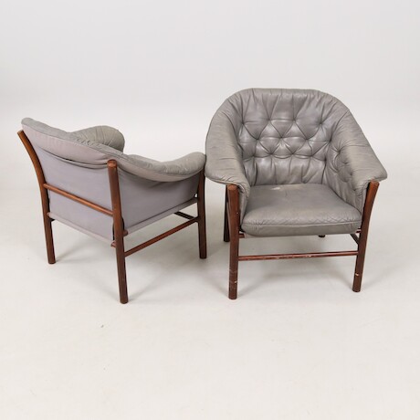 Bilder Fåtöljer ett par "Pedro" Gunnar Kentemo, Göte-Möbler, 1970-tal, stomme i betsad bok, skinnklädda dynor, bredd 85 cm