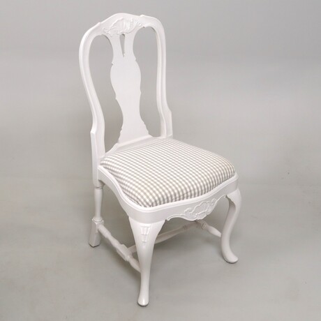 Bilder Matbord + 6 stolar, Bondrokoko-stil, 1900-tal, senare bemålning och klädsel, bordets diameter 115 cm + 3 iläggsskivor