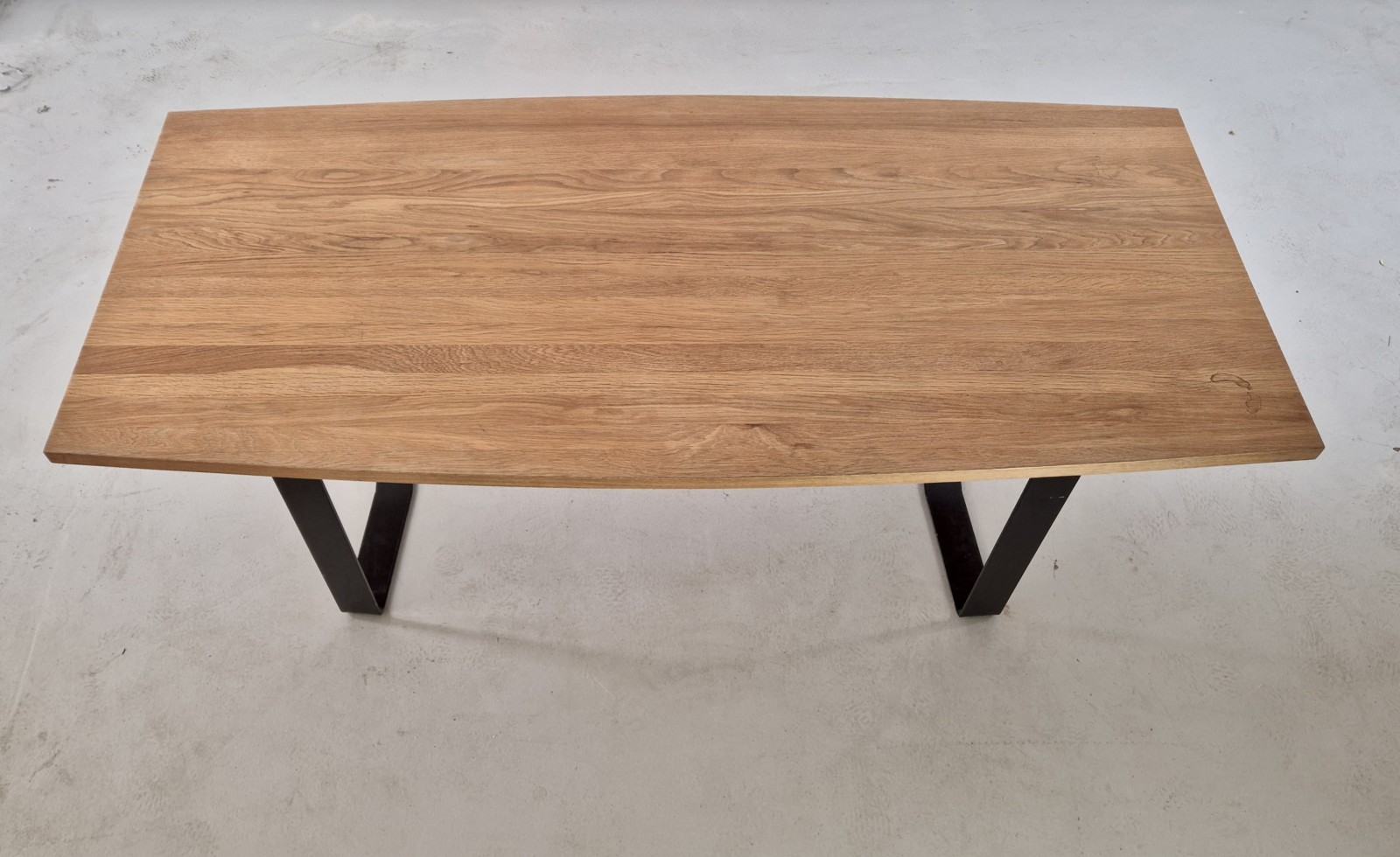 MATBORD MASSIV EK, hela plankor, metallben, svartlackerade