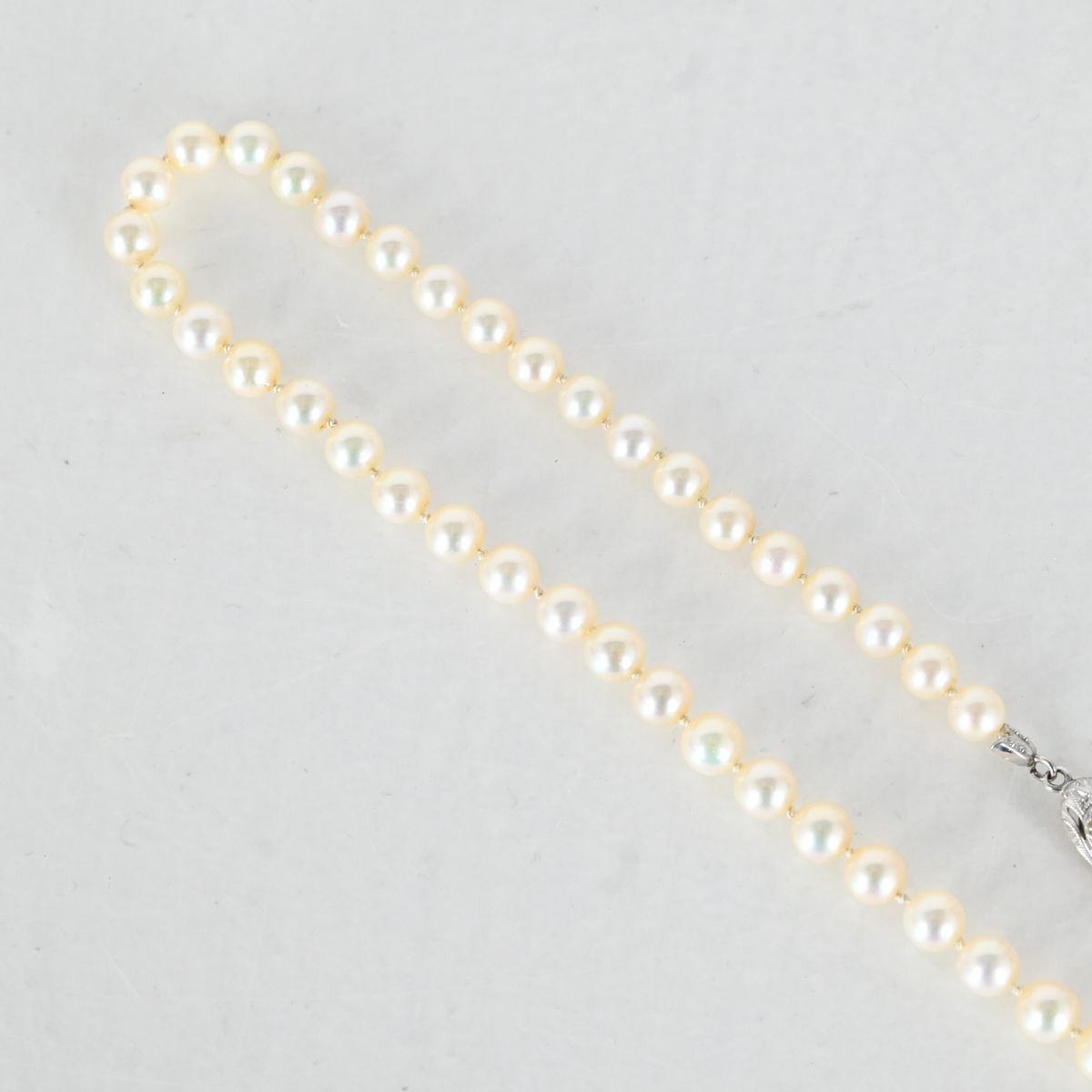 Bilder Pärlcollier, odlade pärlor, lås vitt och rött guld med pärla, 18 K