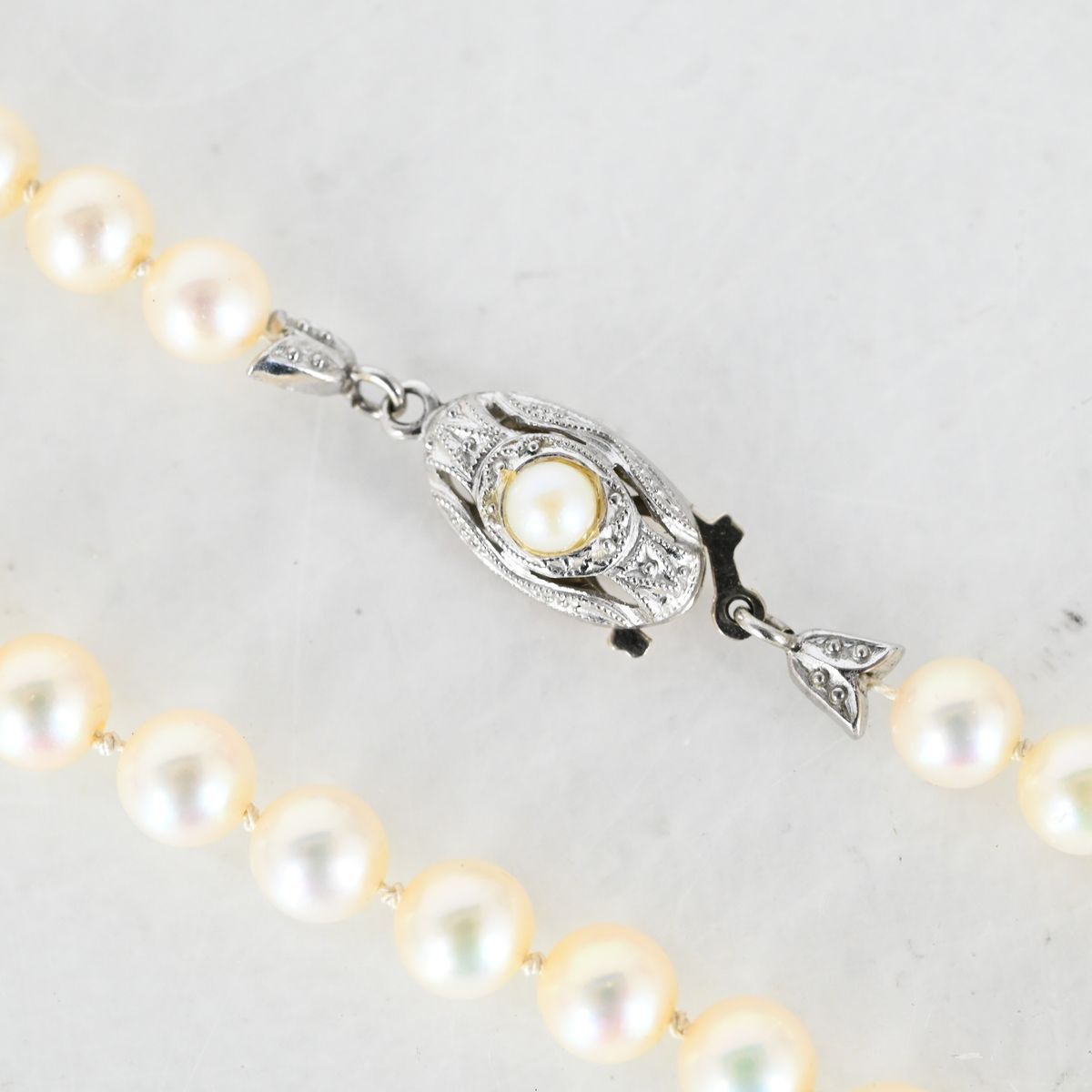 Pärlcollier, odlade pärlor, lås vitt och rött guld med pärla, 18 K