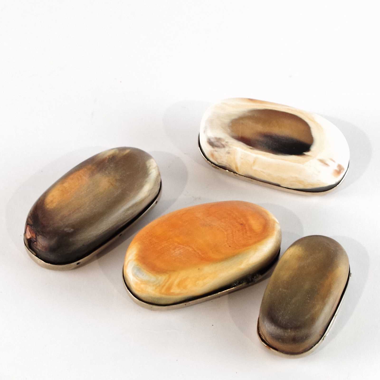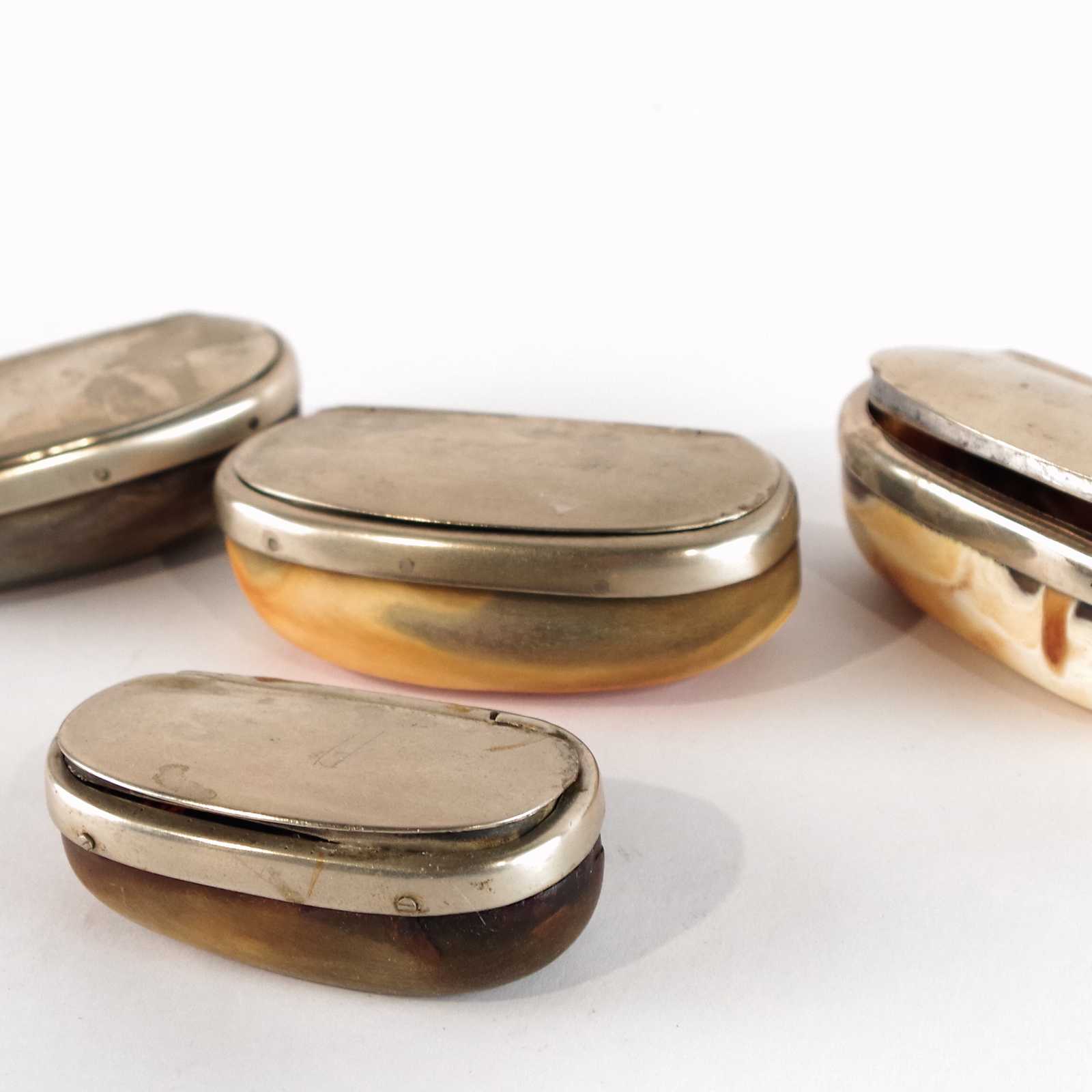 Bilder SNUSDOSOR 4st 18-1900 tal. Hornarbete/vitmetall. B:9cm största.