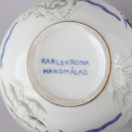 Vaser, 2 st, Karlskrona, "handmålat", H = 15 o mindre